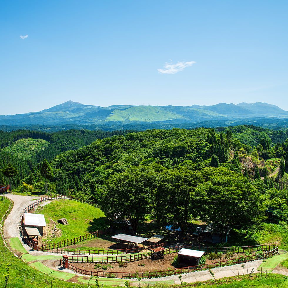 从广阔的草原上,可以360度全方位欣赏到阿苏五岳、九重连山等绝佳景色。尤其在日出与日落时分,景色如梦似幻。这里也是许多电影和广告的热门外景拍摄地。